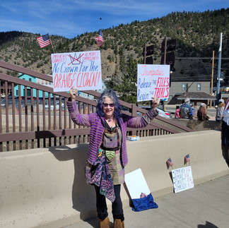 Demonstrators from across Clear Creek County, Evergreen, Loveland, Rollinsville, Denver, and South Minneapolis united in opposition to the policies of cruelty, misconduct, and war that President Trump supports.